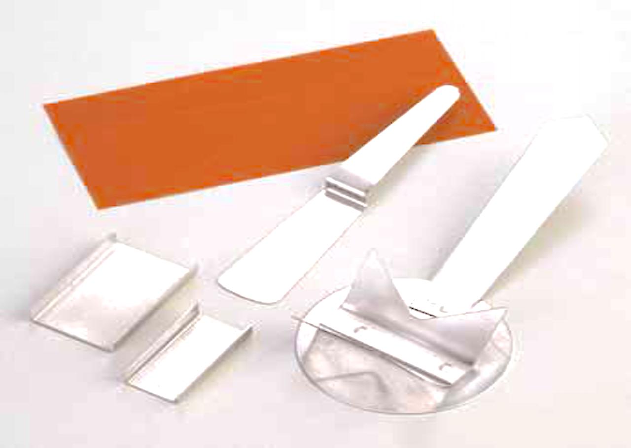 Kit attrezzi per smalti a fuoco. Il kit si compone di 5 pezzi: carta abrasiva, due basi d’appoggio per smaltare, palettina per sollevare i pezzi dal piano di appoggio, base in metallo per infornare i pezzi. Se desiderate smaltare il retro dell’oggetto usate la placchetta che va in forno dalla parte delle stanghette ovvero con la parte piatta poggiata sul piano del forno. Dimensioni della confezione: 11×5,5cm.