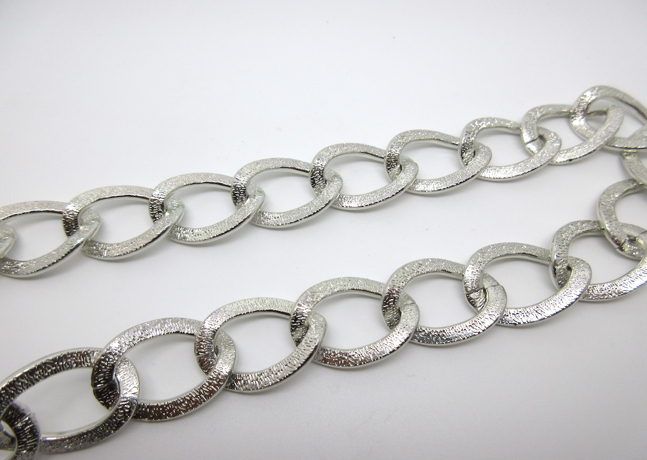 Catena alluminio martellato argento. Dimensioni maglia: 1,5×2,2 cm circa.