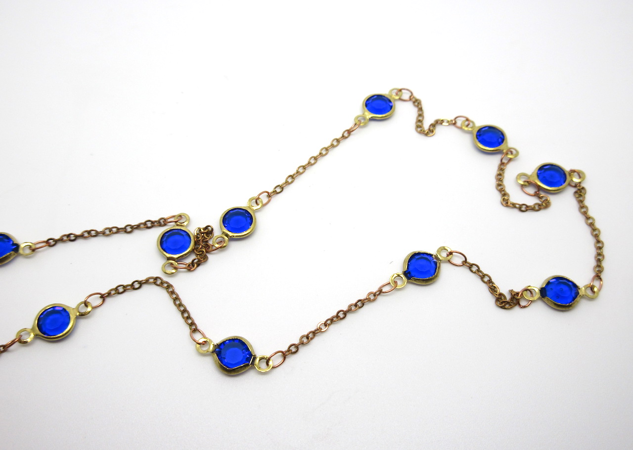 Catena channel ottone con castoni in vetro zaffiro. Diametro castone: 5mm circa.