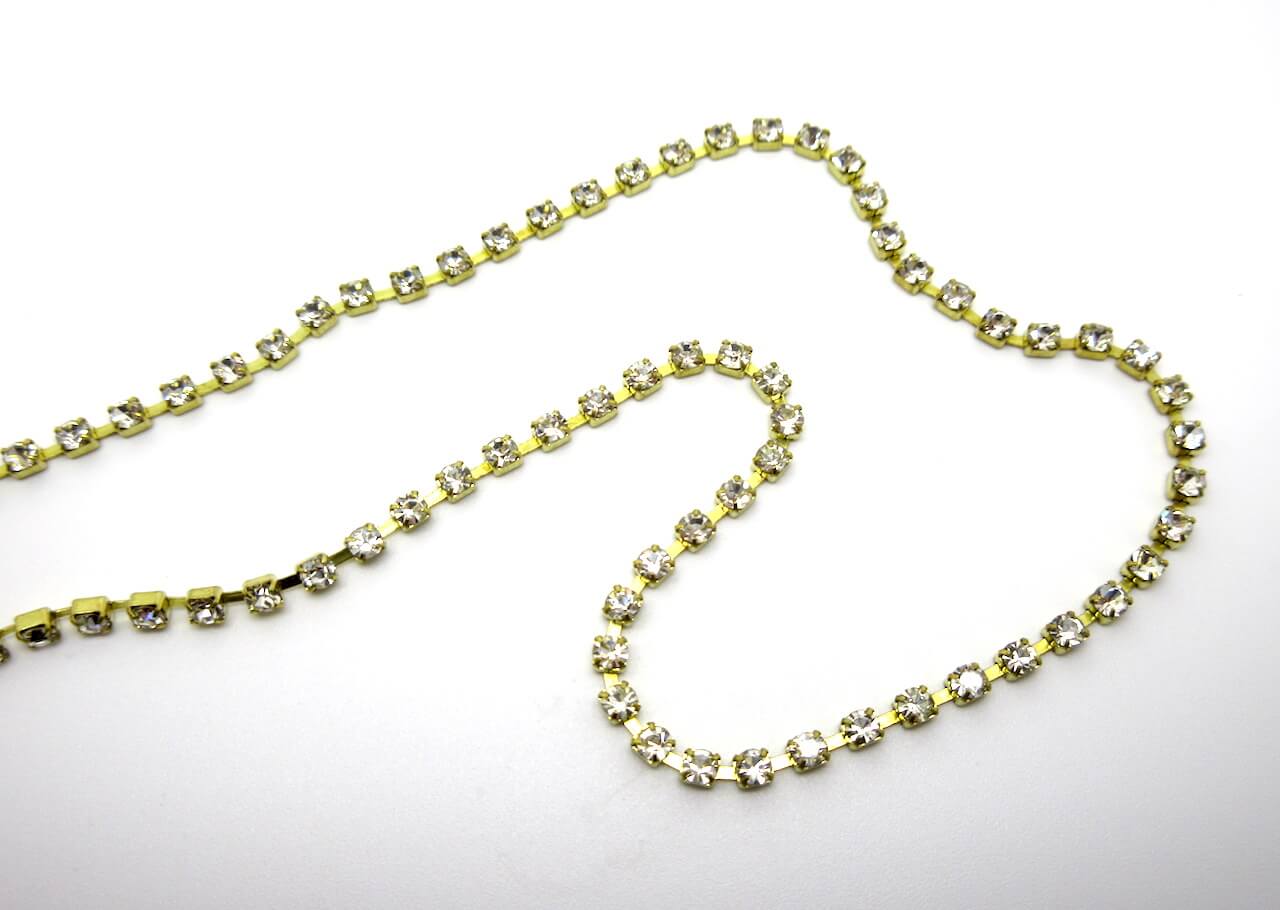 Catena strass ottone e cristallo. Dimensione castone: 1mm c.a.