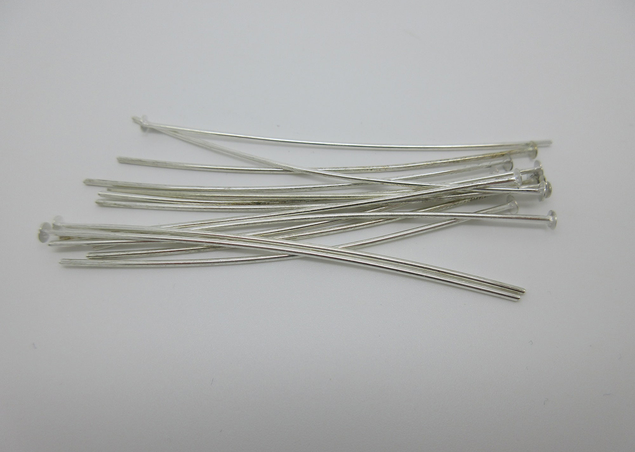 Chiodini ottone color argento testa piatta. Lunghezza: 50mm