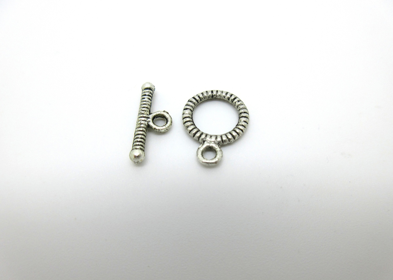 Chiusura t-bar argento anticato nickel free L 15mm ø del cerchio 10mm.