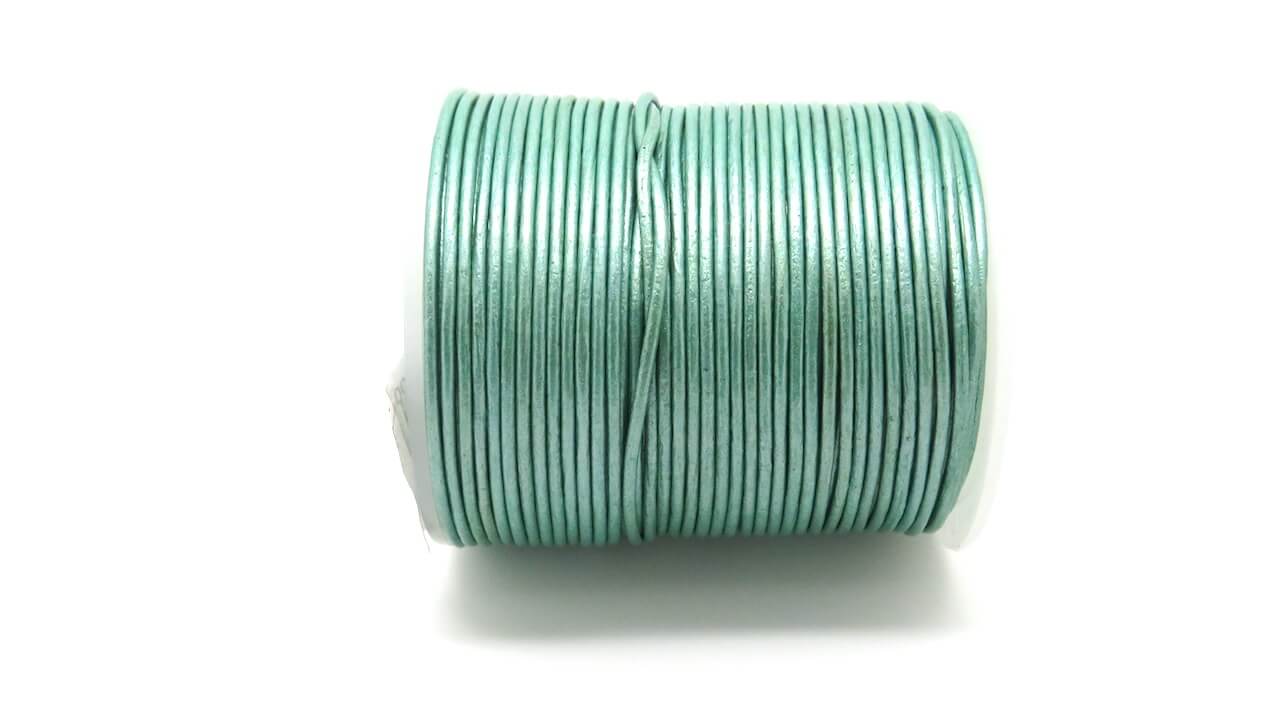 Cordino vero cuoio colore verde Tiffany metallizzato ø 1,5 mm. Confezioni da 1 mt