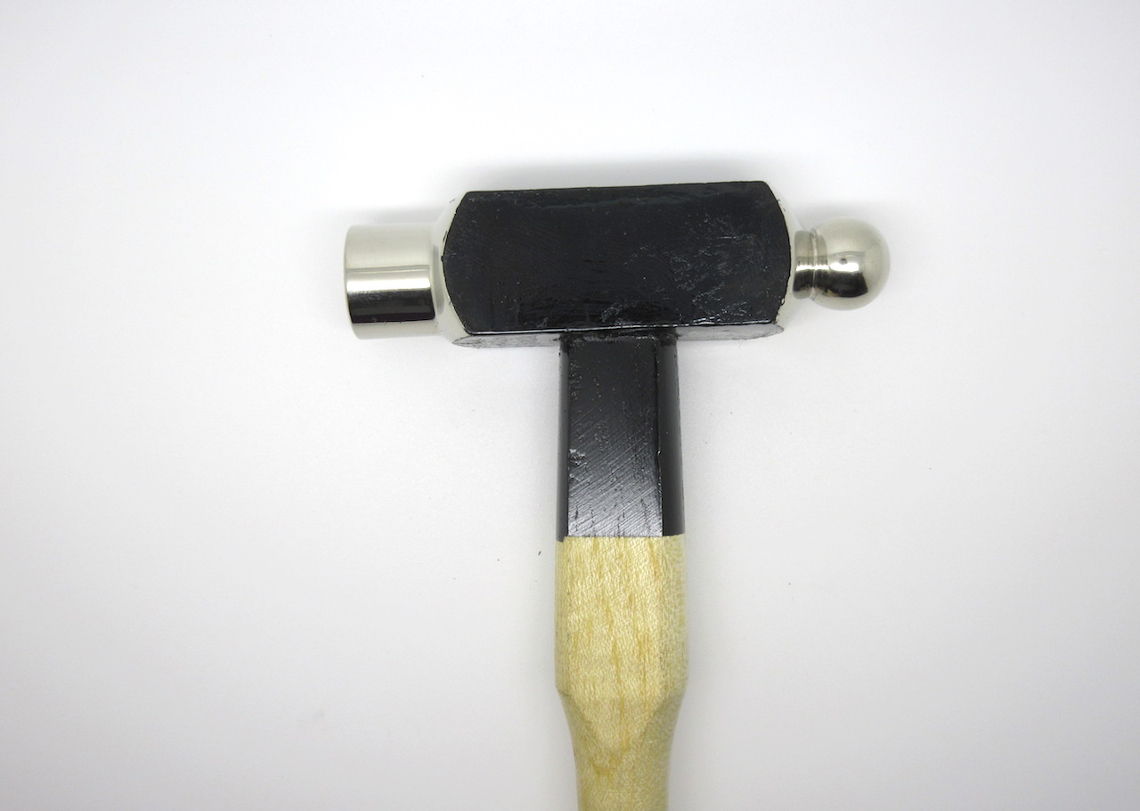 Martello universale per metal stamping. Manico in legno, testa in metallo non laccato. Lunghezza: 23cmx6,5cm c.a. Peso: 113gr c.a. Due terminali: piatto largo, tondo bombato. Si tratta del martello base per chi lavora blocchetti in metallo o fili metallici.