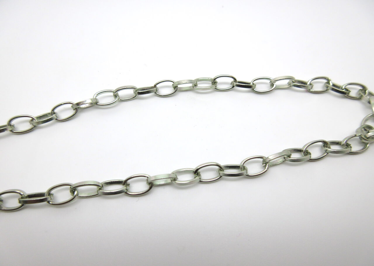 Catena rollò alluminio argento. Dimensioni maglia: 7x5mm circa.